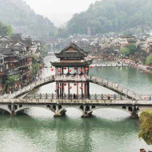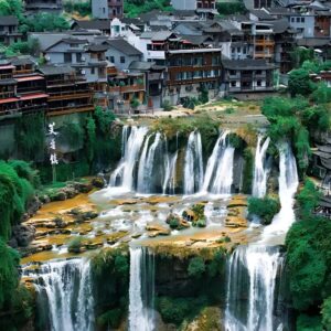- Phù Dung Trấn – Cổ trấn ngàn năm treo trên thác, thuộc tỉnh Hồ Nam (Trung Quốc), trấn cổ Phù Dung thu hút du khách bởi một vị trí vô cùng độc đáo – thị trấn được xây dựng trên một ngọn núi. Nơi cao nhất của thị trấn là 927m và điểm thấp nhất là 139m, đứng từ nơi cao nhất của thị trấn quý khách có thể ngắm nhìn nét đẹp đơn sơ và giản dị nhưng không kém phần thơ mộng của một thị trấn ngàn năm tuổi, từ trên cao quý khách sẽ thấy những con đường quanh co như những mảnh lụa mềm mại uốn quanh thị trấn cổ.